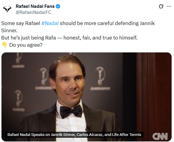 Fans love base grows high as Rafael Nadal Speaks Out for Jannik Sinner